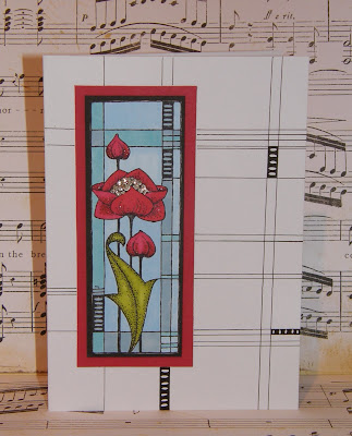 I've made an A5 card and I wanted to extend the design to fill the card so stamped the flower panel onto white card and coloured with pens. I mounted onto red card and fixed to the card. With a ruler and fine tip black pen and laid the ruler across the stamped panel then drew the lines. I echoed the design on the white card. Many thanks for stopping by Debbie