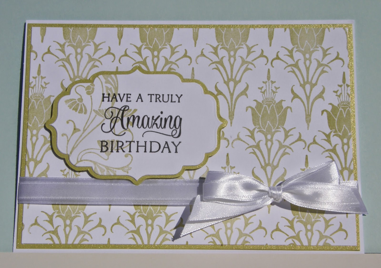 The mathematical side of my brain was very happy doing the repeat stamping for the background of this card. The stamp is from the Nouveau Lovebirds set. I love symmetrical things like fabrics and wall paper.