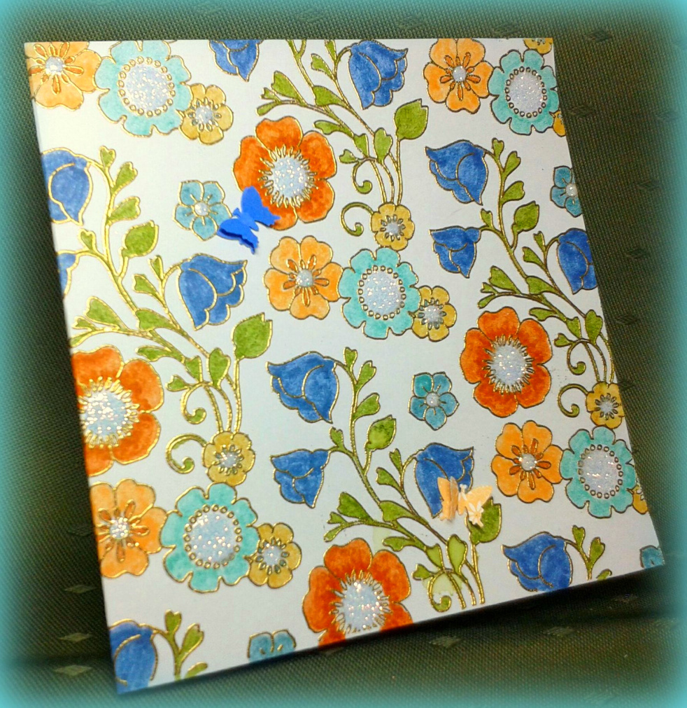 Using watercolour paints by Koh-I-Noor I painted first the background flowers, then the main images. Once the first layers were dry I added more pigment, varying the value in this way adds depth to your images. My sentiment is from Punky Expressions.