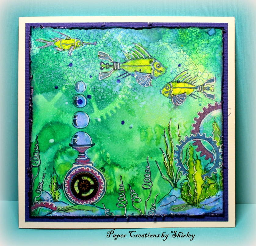 I'm back with another Steampunk under water design using the fabulous Steampunk Sea World and Steampunk Funky Fish stamp sets.