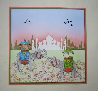 Hi Folks, I have a sample to show you using the new Indian Textiles rubber stamp sheet and the Indian Elephant rubber stamp sheet.