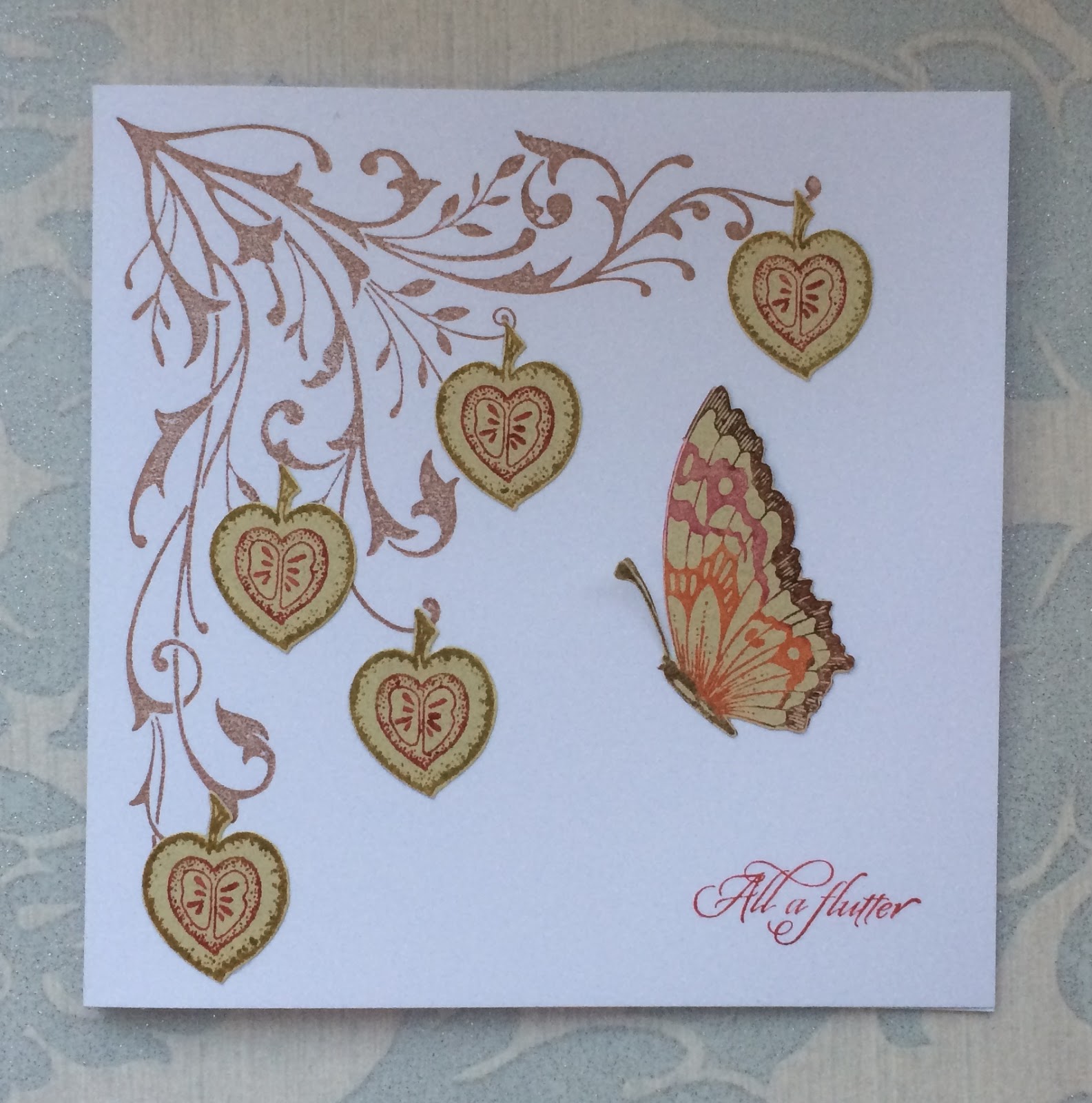 I have a design to show today featuring the heart & butterfly from the new gorgeous Fluttering Hearts stamp set. I also used stamps from other sets that compliment the new one very well.