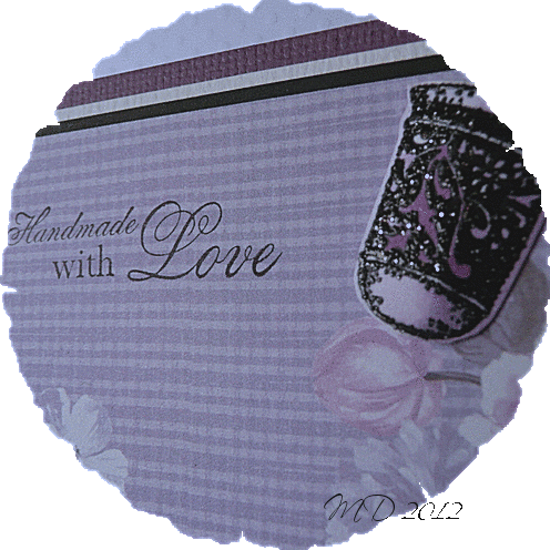I've put the directions on how to make this card below. I've used Chocolate Baroque's newest stamp sets, Haberdashery and Lace Fragments. I also added the word 'Imagine' from the Chocolate Baroque stamp set Artistic Expressions, which is what you have to do on this card! :) The background was stamped with the large lace flower in the Lace Fragments set, and colored in with Prismacolor pencils, and I love the way they came out, subtly in the background. The flowers were made from scraps from different punches, and I used Flower Soft in the center of the yellow ones. Two dressmaker pins, a green button, and some eyelash trim finished off the embellishments. The complete directions are below.