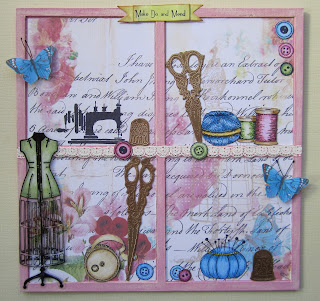 Hello, everyone! These two new stamp sets have really inspired me, and they're right up my alley, too! I love the old fashionedness of the dressform shown here - it reminds me of the old hoopskirts from, as they say here in the USA, "back in the day." Originally, I had thought, and did, put a little yellow bird in the cage, but then I happened to find some printed butterfly images that were 3-D, and I thought it looked better than the birdie. I love to sew, and I love birds, so this was so apropos.
