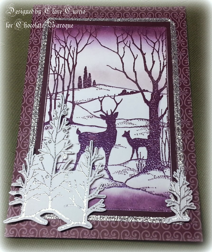 Hi, Chocolate Baroque friends! We are in the midst of releasing new winter and Christmas stamps, and I'm sure you're going to love them! My first card uses elements from three different stamp sets, that go very well together! Two were made to match!