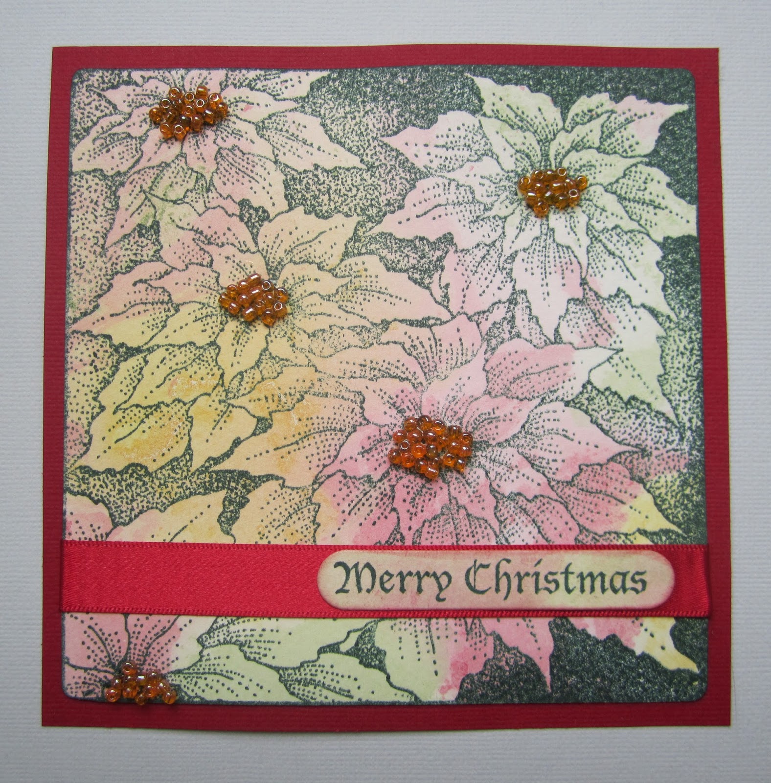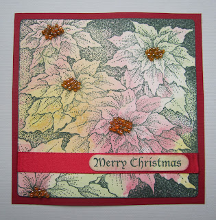 We've been having a great time 'playing' with the new Christmas designs. The following three cards all feature the Poinsettia Edge from Christmas Edges. The new Edge stamps are fantastic, I love them (yes I know I say that about ALL of CB's designs, it's true I'm 'in Love').