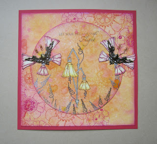 I matted the background onto a piece of toning card, and stuck this onto a larger piece of black card. I added a sentiment taken from the Artistic Affirmations stamp set.