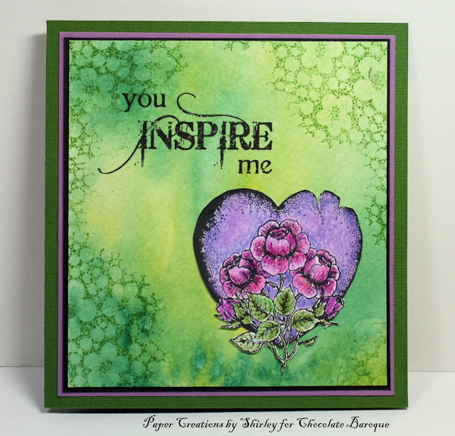 After removing the masks I stamped Love from the Artistic Expressions set (I use this set a lot!) with black versafine ink. I coloured the