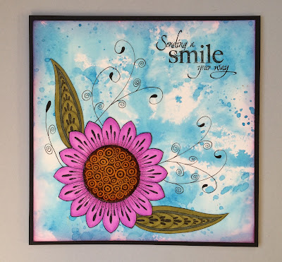 I matted the background onto a piece of toning card, and stuck this onto a larger piece of black card. I added a sentiment taken from the Artistic Affirmations stamp set.