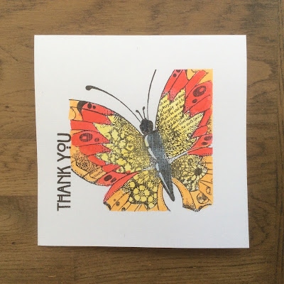 5. Colour the butterfly and some poppies from the second stamped image with a watercolour of diluted Brusho